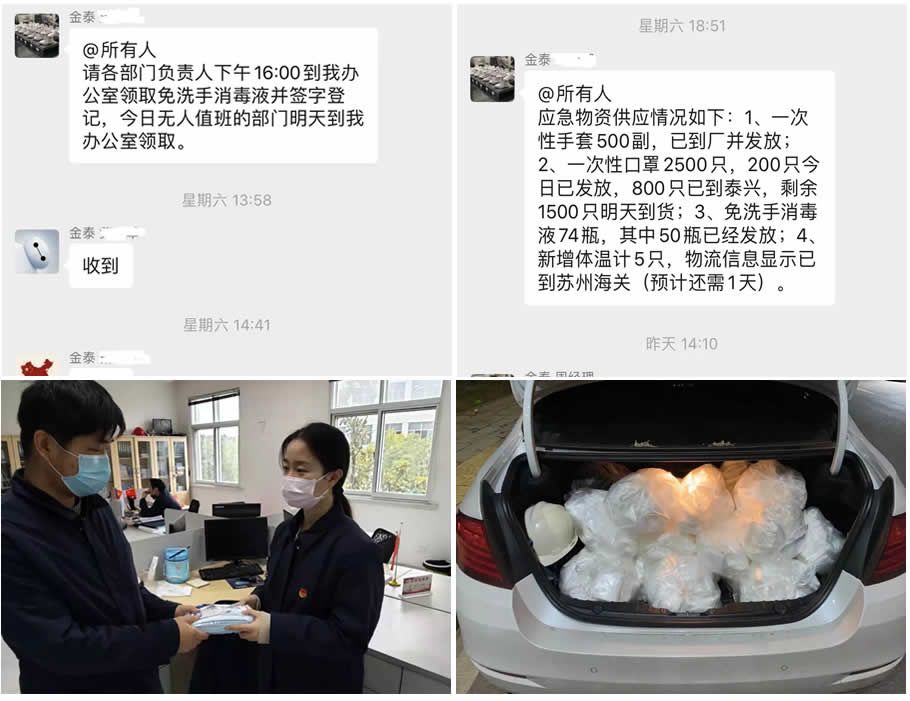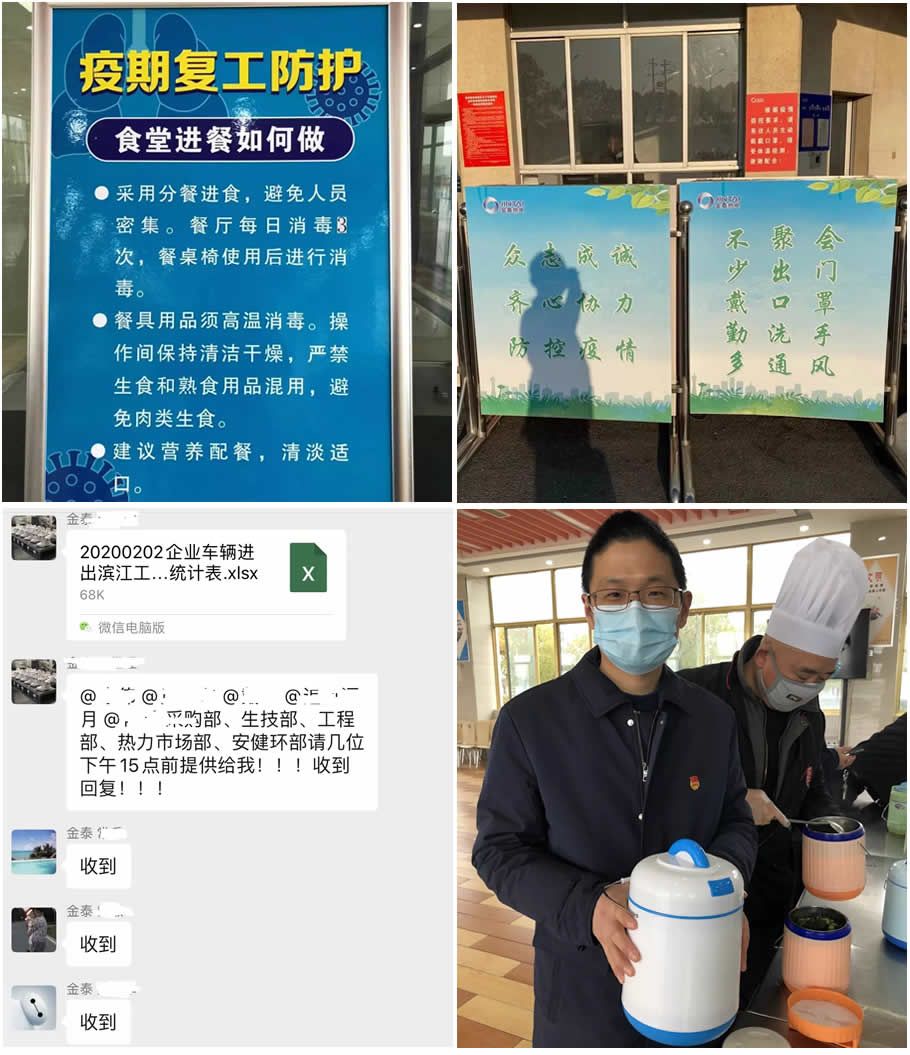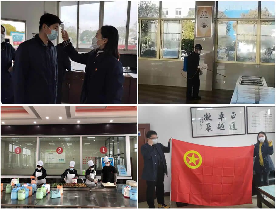 03 民族脊梁,人民榜样;共护国门,共抗疫情 有这样一群人,他们用责任守护健康家园,用行动点燃希望之火,他们有共同的一个名字—共产党员。面对寒冬里的这场疫情,公司党支部15名全体党员和团支部18名全体团员同志站在了抗击疫情的前线,所有党员、团员主动担当,勇挑重担,生产区域、办公区域、公司门岗都有他们的身影。 他们投身一线,每天清晨为入厂员工测量体温,发放防护用品;每天为生产楼、行政楼、员工宿舍、班车等重点防护区域进行消毒灭菌;每天为生产人员装好饭菜送至指定用餐区域。他们每时每刻都在用行动诠释着共产党员和共青团员的使命与担当。