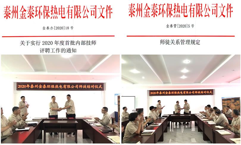 7月27日下午,金泰历史上首次 “师徒结对仪式”正式启动,在公司中高层及部分员工代表的共同见证下,来自运行、检修、中高管理层的5对师徒确定了师徒关系。师徒结对仪式上,公司总经理徐振华从不同的角度表达了自己作为师傅对该角色的理解和对活动开展的期待,并鼓励骨干员工发挥传、帮、带作用,帮助员工快速成长。既要从思想道德、技能提升等多方面不断提醒,引导徒弟开展各项工作,又要发挥示范作用,成为徒弟学习的楷模;同时对新员工的快速成长提出了殷切希望和具体要求,希望新老员工虚心好学,主动求教,尽快提高专业技能水平。